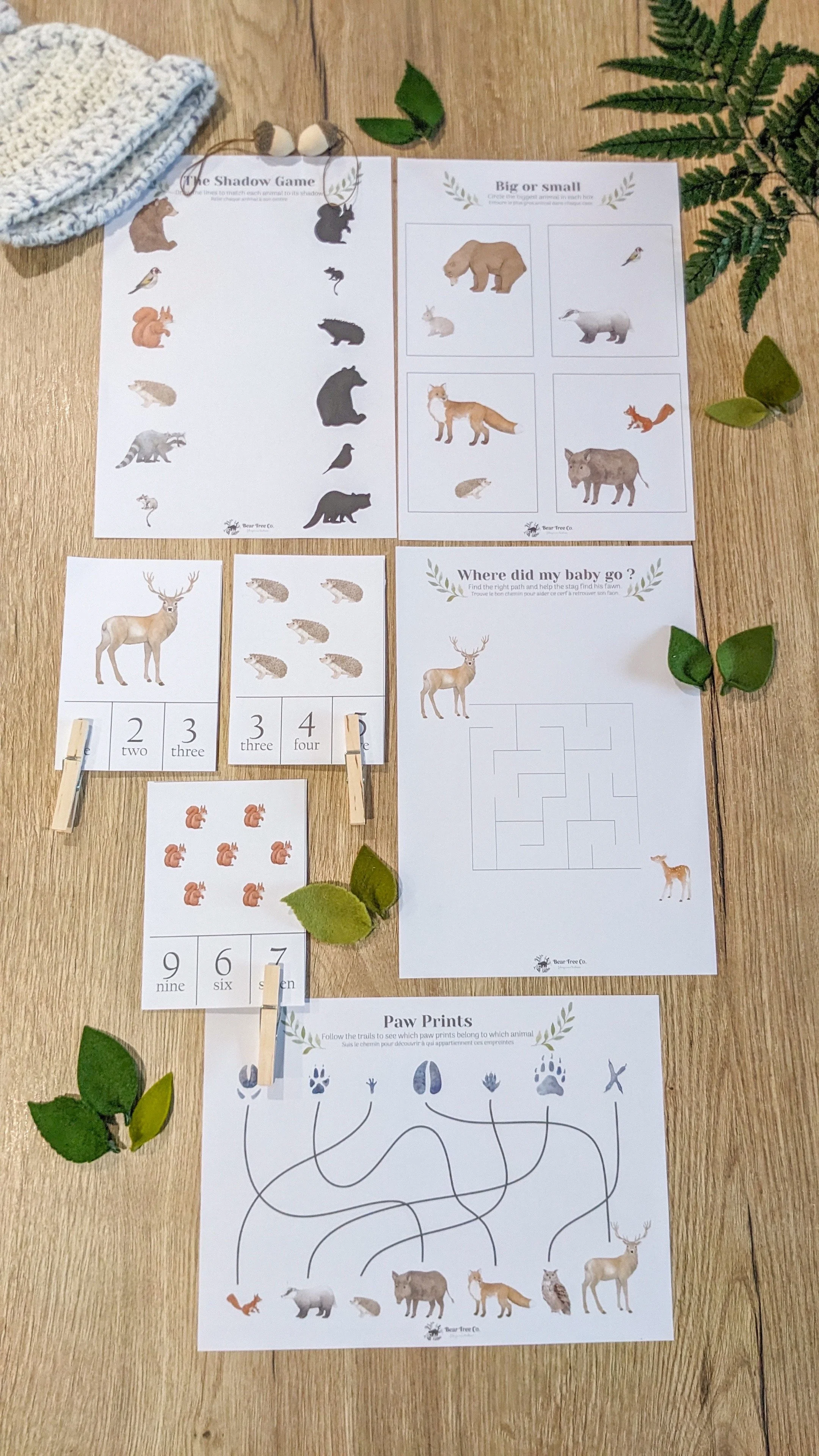 Création d’un cahier d’activités bilingue pour Bear Tree Company21 pages d’activités en anglais, comptage, puzzles, coloriages, activités créatives,…